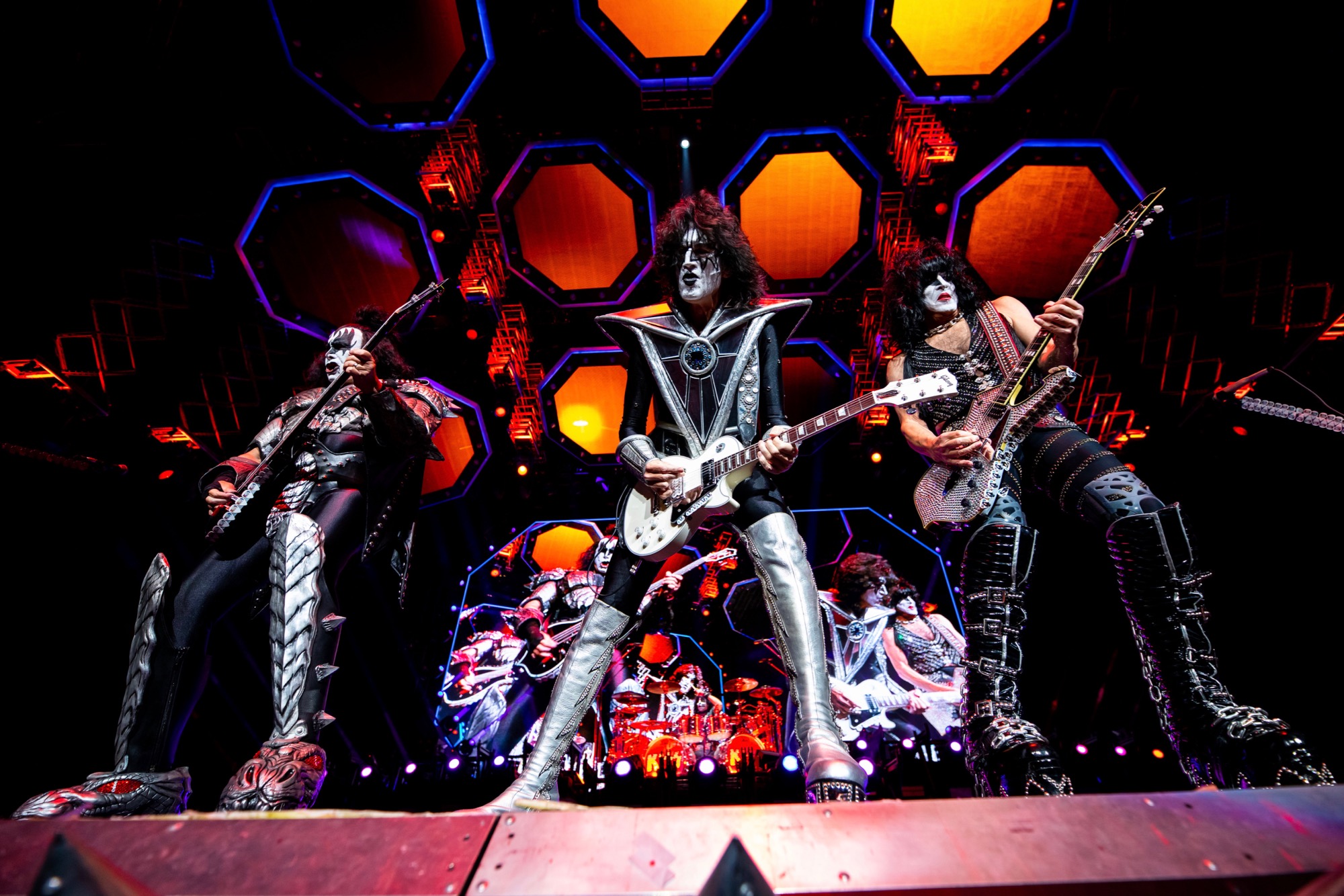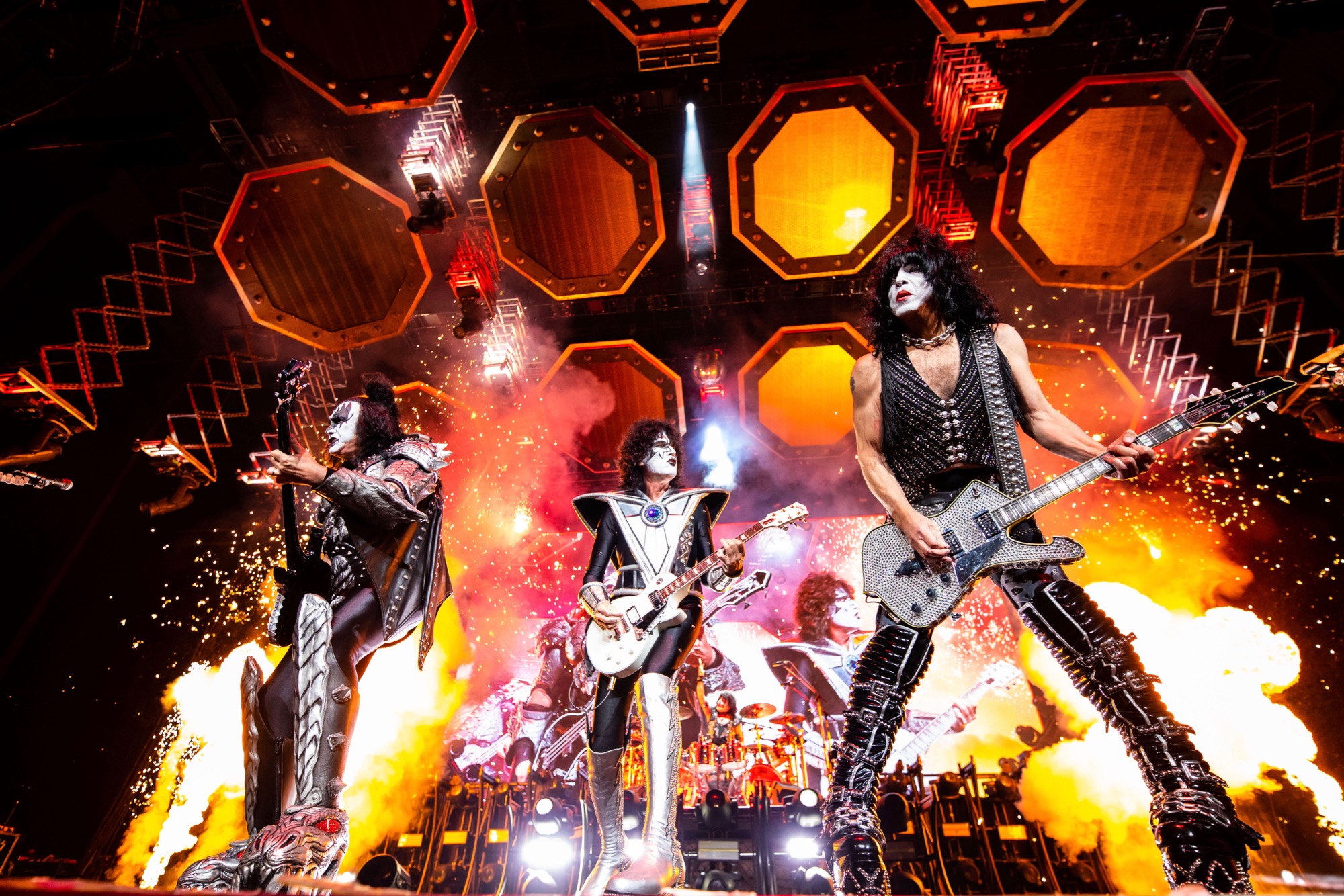 On Saturday, Oct. 16, the Hollywood Casino Amphitheatre in Tinley Park closed out its 2021 season with a rockin’, rollin’, fire-breathin’ performance by the incomparable band KISS. Paul Stanley, Gene Simmons, Tommy Thayer and Eric Singer began their Chicago-area stop of the End of the Road World Tour with the one-two punch of “Detroit Rock City” and “Shout It Out Loud” before sharing a setlist full of hits from the group’s almost 50-year career.